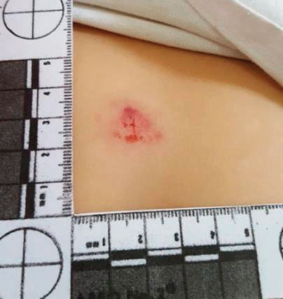 Figura N° 6. Hisopado de la huella de mordedura. Fuente: Gómez, C.Y., 2022.