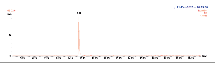 La cromatografía gaseosa acoplada a espectrometría de masas (GC-MS) se confirma como una técnica analítica relativamente sencilla y altamente efectiva para la identificación de los componentes en sustancias incautadas. Su capacidad para identificar compuestos relacionados dentro de una misma familia, como las catinonas, así como para separar mezclas de principios activos y detectar adulteraciones, la convierte en una herramienta indispensable en el ámbito forense (Núñez Bravo, 2022; Stashenko y Martínez, 2010).