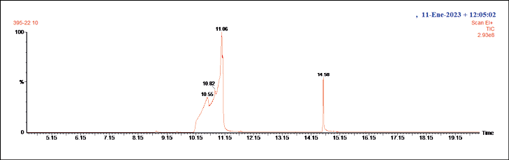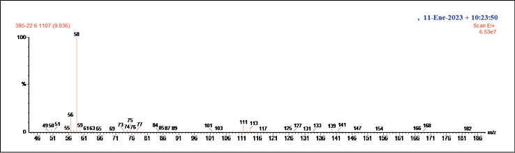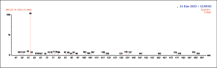 Figura N° 12. Espectro de masas de la sustancia con tiempo de retención 11.06minutos.