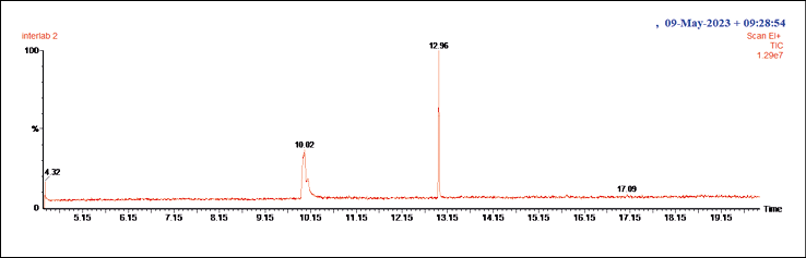 Figura N° 19. Espectro de masas del compuesto identificado a 12.98 minutos.
