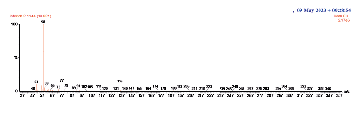 Figura N° 13. Espectro de masas de la sustancia con tiempo de retención 14.58 minutos.